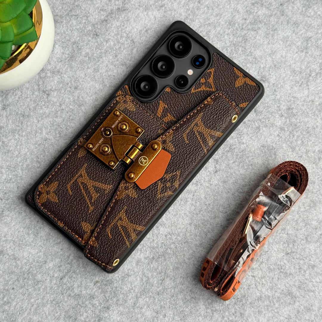 Toiminnallinen sisustussuunnittelu: Tyylikkään ulkokuoren lisäksi kotelon sisäpuoli on suunniteltu käytännöllisyyttä silmällä pitäen. Siinä on tyypillisesti korttitaskut ja käteistasku, mikä muuttaa kotelon toimivaksi lompakoksi. Tämä kaksikäyttöinen ominaisuus lisää kätevyyttä niille, jotka haluavat kantaa välttämättömiä tavaroitaan yhdessä tyylikkäässä asusteessa.