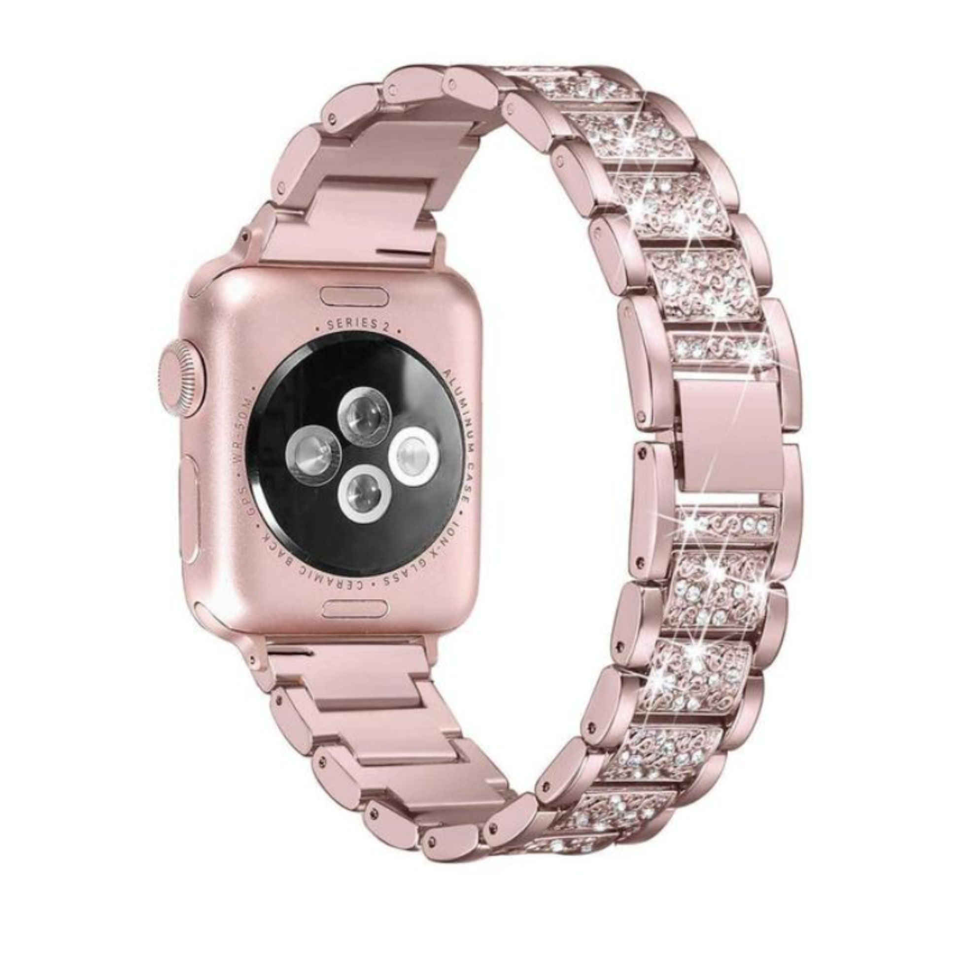 Ispirato al design italiano, nasce un classico. Adornato e impreziosito con gemme simulate che gli conferisce una sottile brillantezza e lucentezza. Realizzato in acciaio inossidabile di alta qualità, questo bracciale a maglie metalliche è una scelta intramontabile e resistente per il tuo Apple Watch. Presenta un design elegante e sofisticato che Aggiunge un tocco di eleganza a qualsiasi outfit.